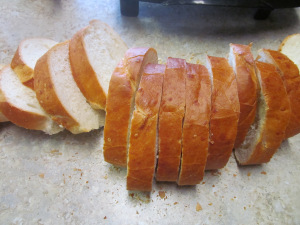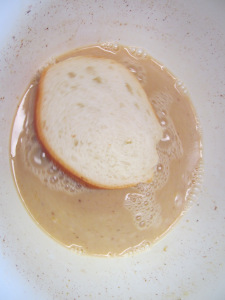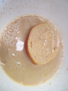 Slice up a loaf of French Bread or Cinnamon Swirl Bread and dip it into batter (both sides).